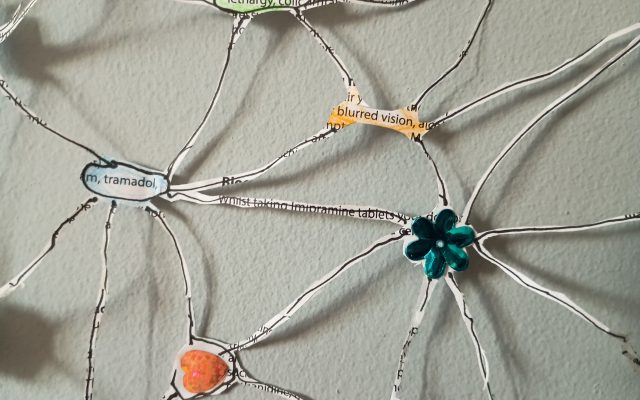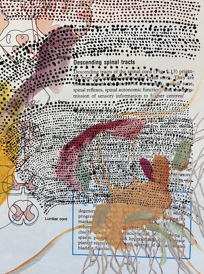 Whilst at Cample, Catherine will develop new collages as part of a wider body of work on paper that uses pages from medical textbooks or the literature found on pill packets. She will also engage in some wintery sonic explorations of Cample’s surroundings, gently and quietly using her voice as an extension of her body.